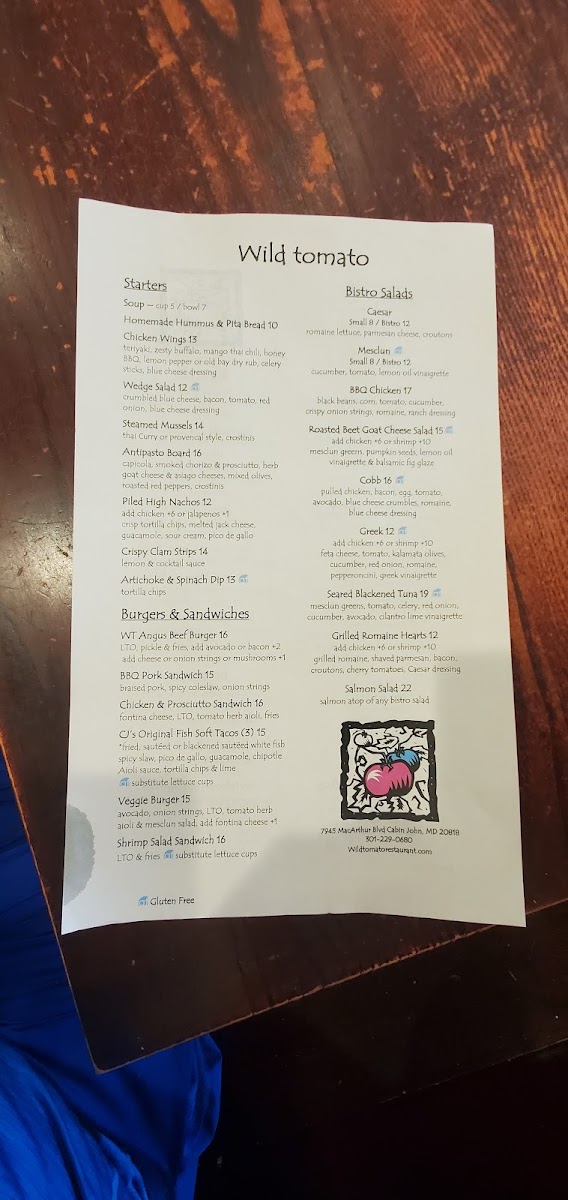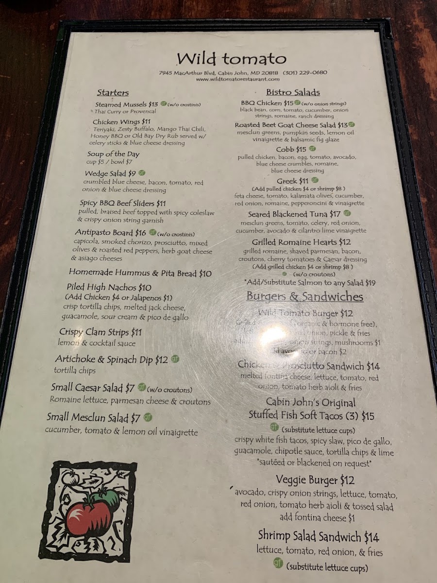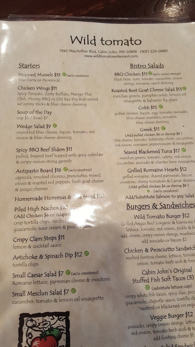 Welcome to Wild Tomato, a charming American restaurant located at 7945 Macarthur Blvd in Cabin John, MD. As you step inside, you’ll immediately feel the warm, inviting atmosphere that makes it a perfect retreat after a day of exploring the area, like the nearby Great Falls or the Billy Goat Trail. Whether you're stopping in for a casual lunch or a cozy dinner, Wild Tomato offers a delightful dining experience that caters to all tastes.